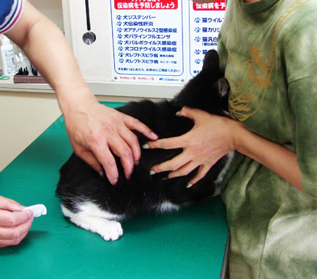 一年に一度のワクチン接種。今回は白黒。手早くキャリーリュックに拉致(笑)し、いざ出陣。