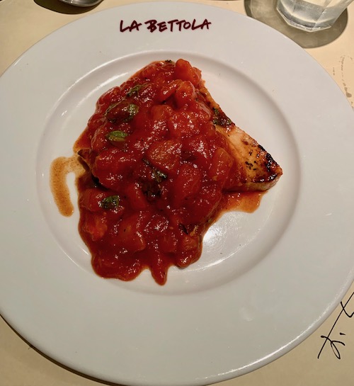 こうなったら、魚でコンプしようと、メカジキのグリル 生トマトとバジリコのソース に決めました。今思うと、スズキのグリルずわい蟹と長ネギソース、でもよかったかな〜と。