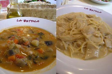 私は色々な野菜のスープとポルチーニ茸のスパゲッティ(大盛+315円)。
