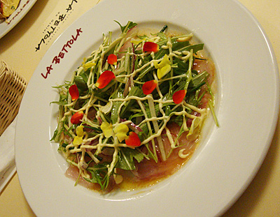 で、これがCの前菜、かんぱちのカルパッチョ。