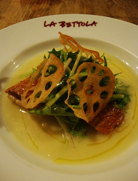 金目鯛のうろこ焼き 聖護院かぶのソーススープ仕立て