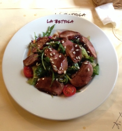 牛・豚・鴨が選べます。牛でも良かったかも…。私レアが好きなので、タリアータの牛はきっと好きだと思うのです。でもここは鴨で。