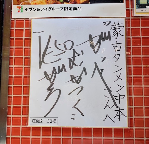 わたくし、「あたおか」ですし、エガちゃんのことはけっこうずっと、震災よりも前から好きだったので、自分が座ることになった席の正面にあるこの色紙に、静かにじわじわと嬉しくなりました。