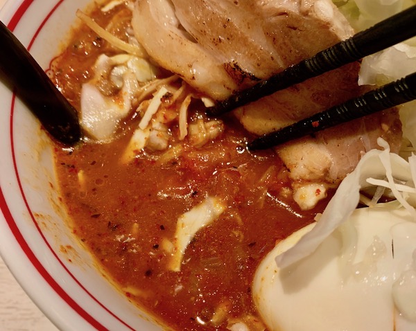 中本の味噌とトマトのスープってことらしく、辛さは抑えめタイプと通常があり、通常は辛10なんですが、全然そんな感じがしませんでした。
