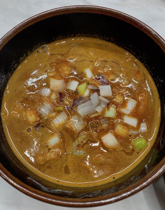 煮干しで出汁をとった、超和風のこちらは、辛さレベル7とのことで、辛さupは5倍まで対応だけど、辛さに走るのは趣旨の逸脱というような評もございましたし、私もそこは頷ける…ということでね、2倍に抑えました。