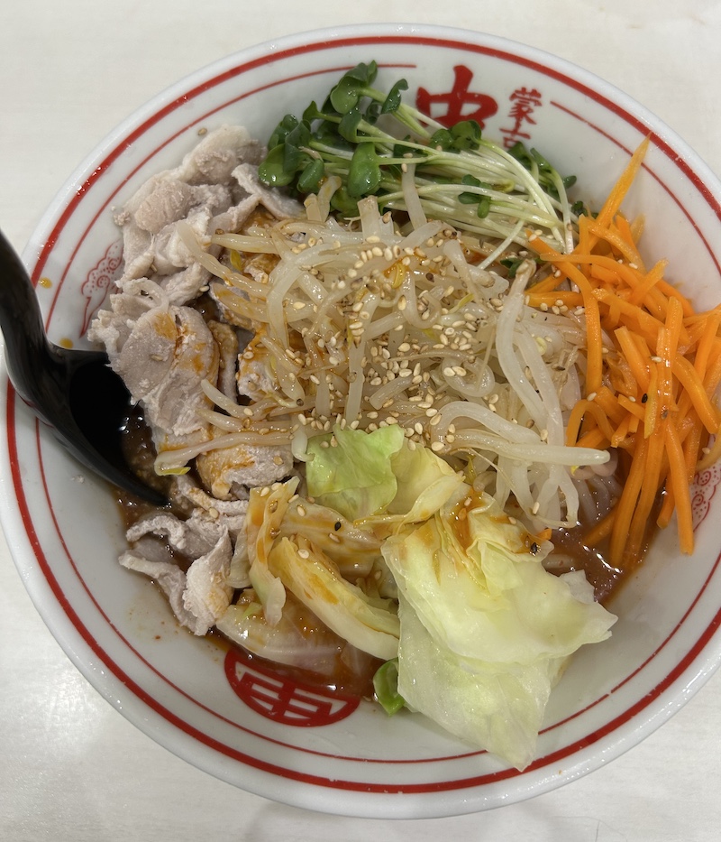 名前の通り、冷やしです。酸味の効いた辛さレベル7の、中本的冷やし中華とでも言いたいところですが、冷やし中華よりもスープは断然多い(というか普通にラーメンスタイルと思われる)。