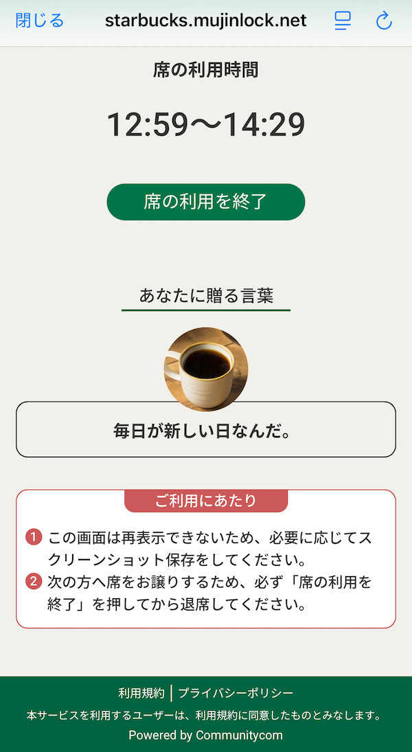 6席あって、二次元コードから席を確保して使うようになっています。たまたま空いていたので使ってみました。