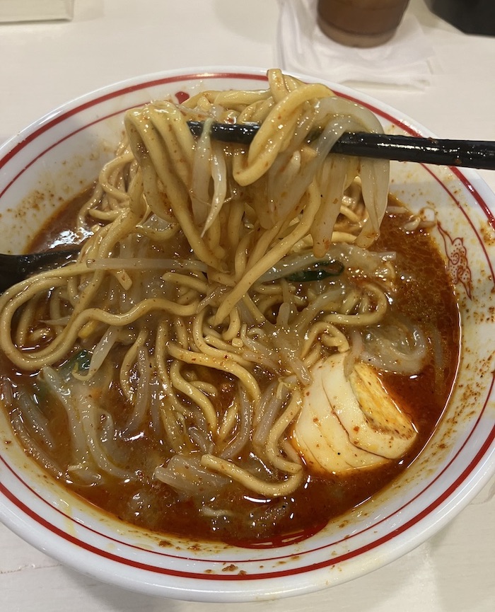 すごく辛そうだけど食べてみたいと言う母に最初の一口をあげて、辛い辛い言いながらだけど、一度食べたことのある蒙古タンメンよりも美味しいそう。