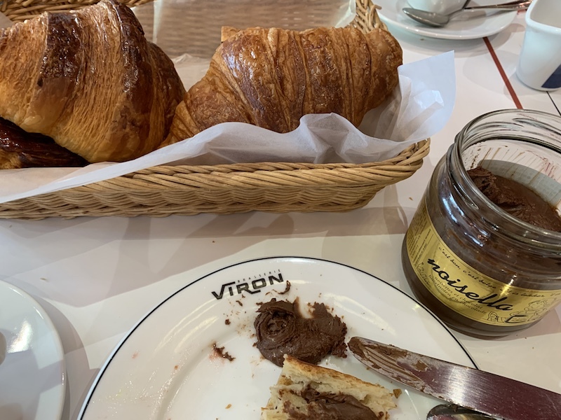 これだけあるんだし、愛するVIRONだし、とにかく食べてみようとコンフィチュールに手を伸ばす。イチゴと桃を少しずつ。セレアルにつけていただく。勝手ながら、もういいや、でした。バゲットにもちょっとだけつけたけど、この先どうしようかなぁ…とか思いつつ、チョコレートクリームをつけてびっくり。