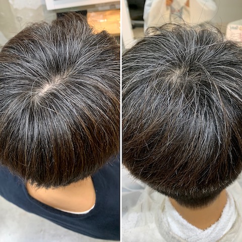 なんというか、伸びた分を2cmほどはカットしたので、単純に白髪割合がその分増えたはず。