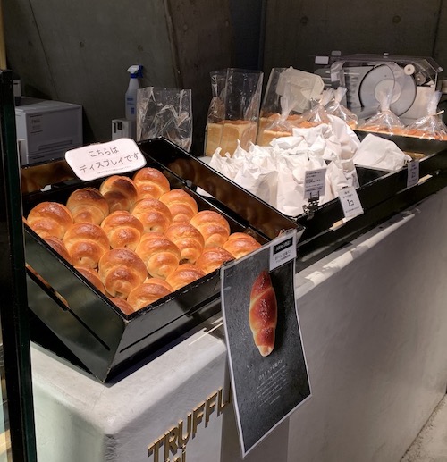 この、白トリュフの塩パンがこのお店で最も人気のあるアイテムです。初めて訪れた正体不明のお店と仮定して、いきなり650円の卵サンドには手が出ないと思うんだけど、こちらは200円弱。とはいえ、いわゆる塩バターロール、からすればちょっとお高め。ですが、先ほど述べた黒トリュフよりも高級とされる“白トリュフ”が冠されているわけですから、こんなもんか、と思えるんだろうなー。