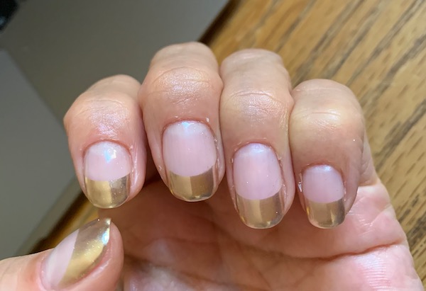 小指などは、シールの置き方に問題ありかなとも思いますが、こうもくっきりはっきりと、フレンチラインが描けたことについては、非常に満足です。