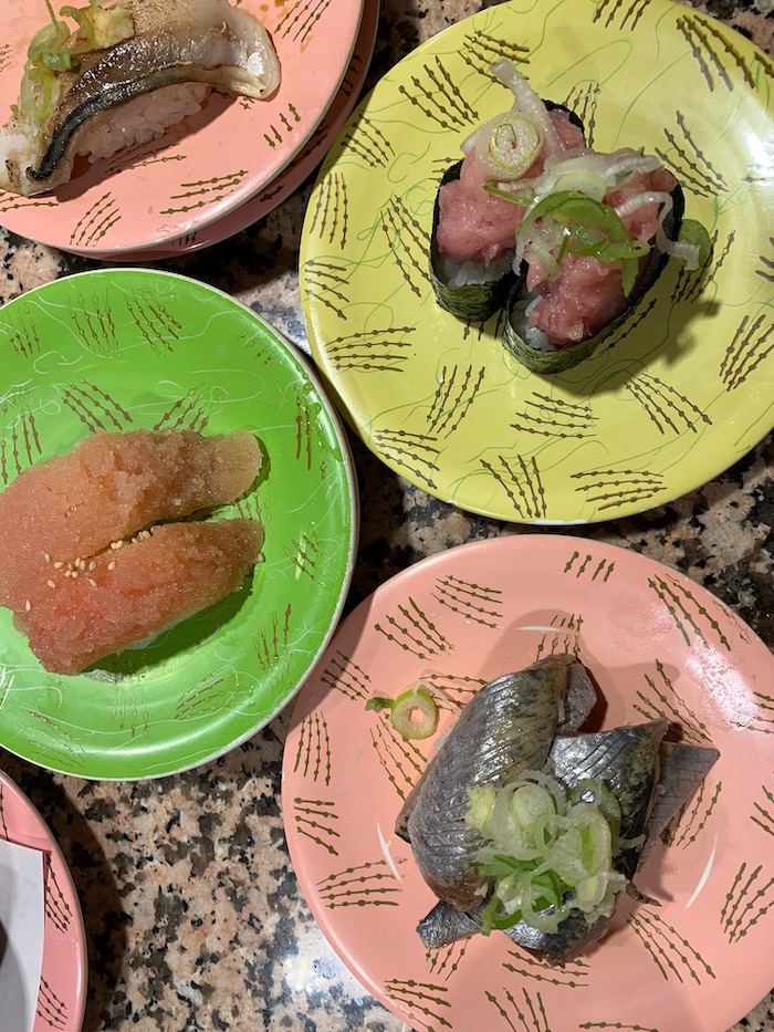 これは、東京駅近くのKITTE内の根室はなまるで回るお寿司をたっぷり頂きました。