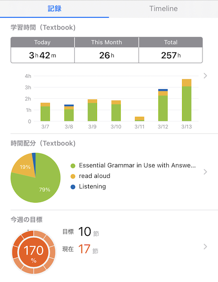 今週の英語学習時間:13時間42分。