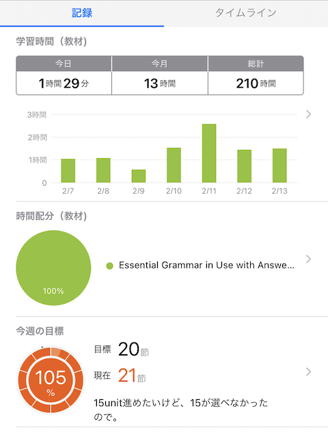 STUDY PLUSだと10ずつしか入れられなかったので、+5で目標設定をしたわけですが、当初の目標の+6で終えることができました。