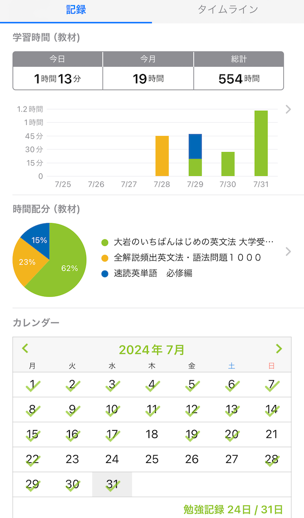 7月の学習時間は、正確には19時間45分なので、30分あったら、20時間超となったわけで…。