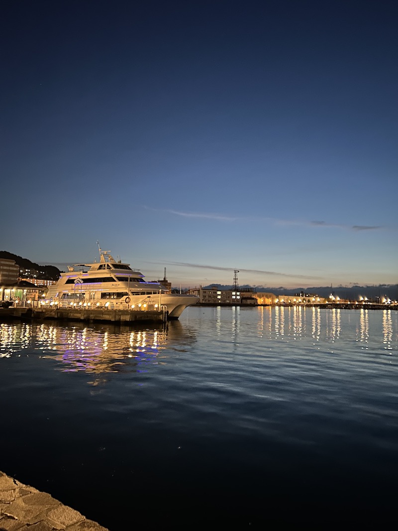 日は落ちて、ライトアップがたまりません。旅情も掻き立ててくれるというもの。