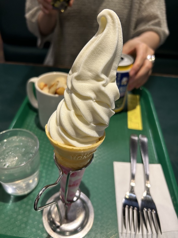 五稜郭のそばのお店の前にあった、ソフトクリームののぼりと、ソフトクリームの形したアレですよ、わかるでしょ?外に置いてあるアレ。見た時から絶対食べるぞと、北海道だしな!と。
