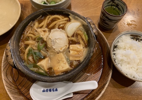 一番普通の味噌煮込みうどん一半を、ご飯つきで注文。