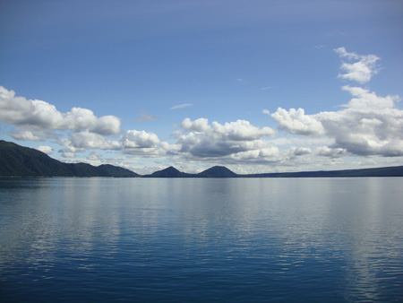 支笏湖二日目-青い海白い雲
