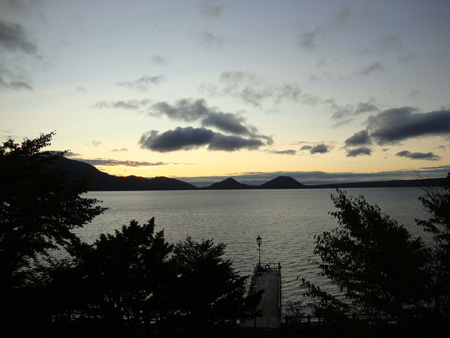 散歩して隣(といってもまぁ遠いよ)のいとう温泉の方から見た丸駒温泉旅館。ちょうどこの平たい建物が温泉棟。