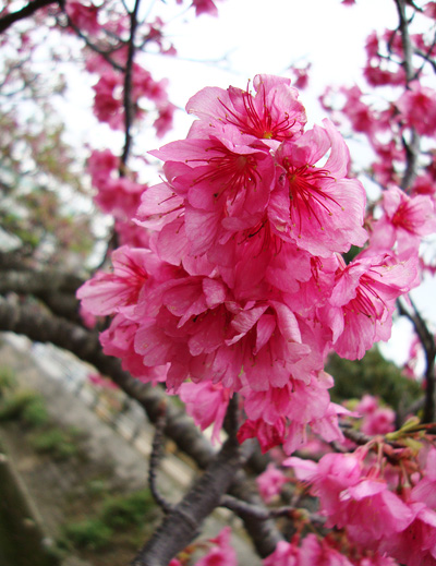 この濃い色合いの桜は、沖縄にぴったりじゃないかと、冬に戻ってきて思うのだが、実際この場で初めて見た時には、???という想いでいっぱいだった。しっくりこなかった。